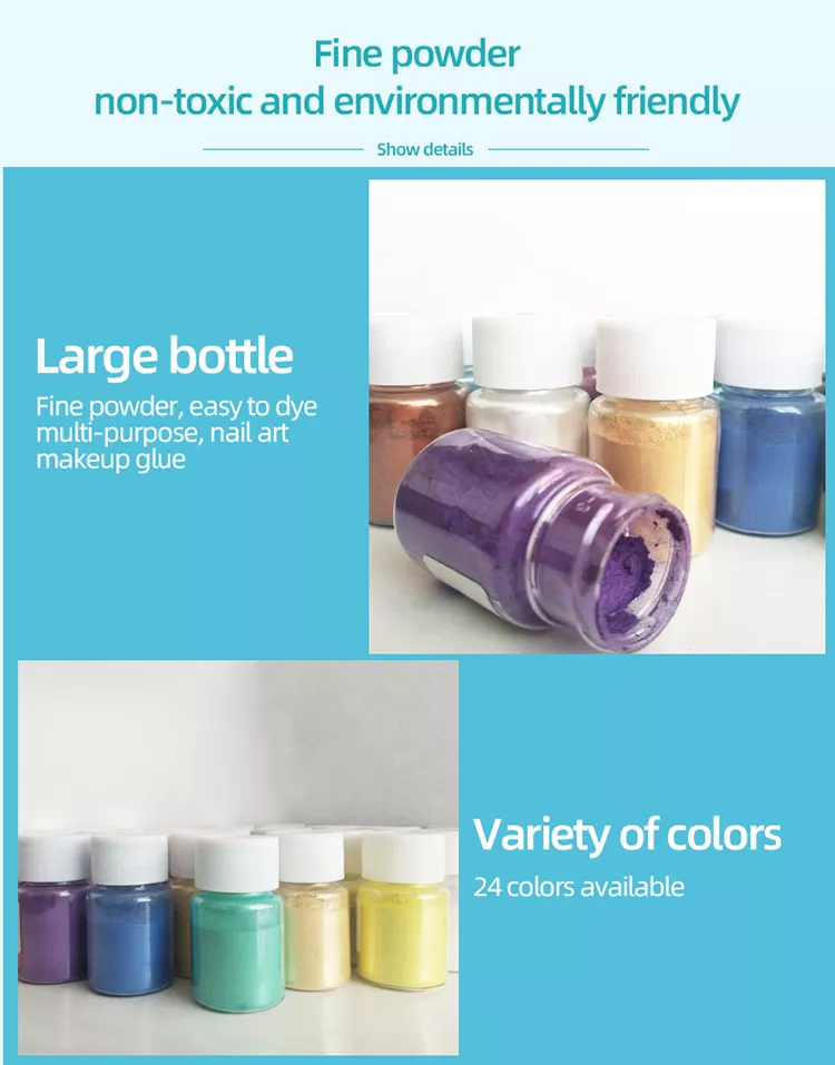 Specifications of Mica Metallic Powder Pigment Art Craft DYI Epoxy Resin Pearl Color Pigment Cosmetic Grade Pearlescent Mica Powder, 200grams in bottle