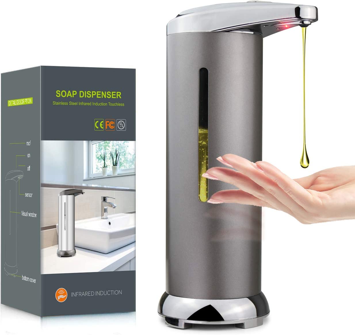 Specifications of Stainless Steel Automatic Alcohol, Liquid Soap Dispenser, Hands Free, Touchless Infrared Sensor Soap Dispenser, Battery Operated