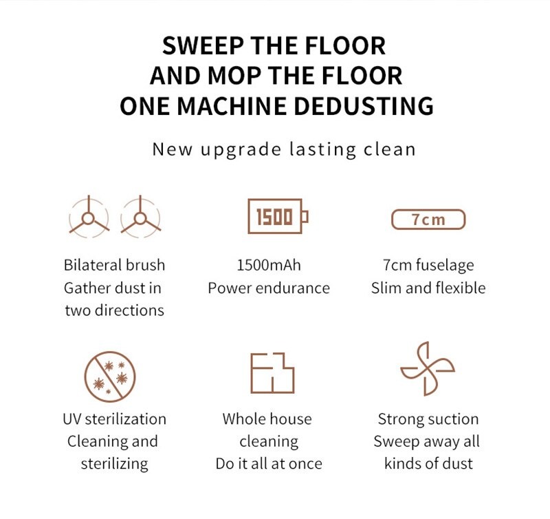 - Mainly for the home’s fine dust, pet hair, hair, a smart sweeping robot.